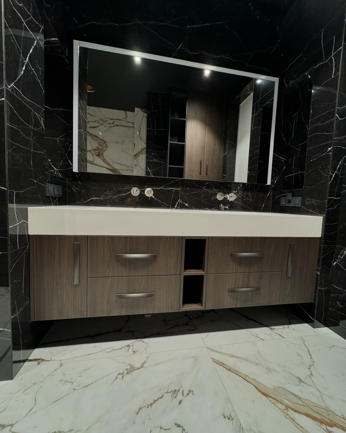 Працюємо з такими матеріалами як Egger (Австрія), Cleaf (Італія), Skin (Італія) Saviola (Італія) та інші, а також виготовляємо вироби із фарбованого МДФ, металу, масиву, каменю, шпону та інших. Усі наші вироби вкомплектовані якісною австрійською фурнітурою Вlum.